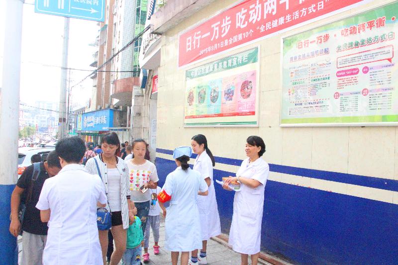 今年9月1日是第十个“全民健康生活方式行动日”.为普及健康生活意识,营造全民参与健康行动的良好氛围,县人民医院开展系列宣传活动。“日行一万步,吃动两平衡,健康一辈子”宣传横幅挂在医院大门口旁,提醒着过往群众应注意自身的生活方式。医院健康促进办公室医务人员走进门…