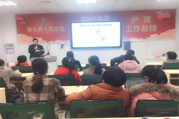 1月8日,县人民医院在新医疗综合大楼党员学习室召开2018年护理工作总结大会,院领导周勤、喻新强、梁艳红出席,护理部、院感科负责人及病区护士长共50余人参加。