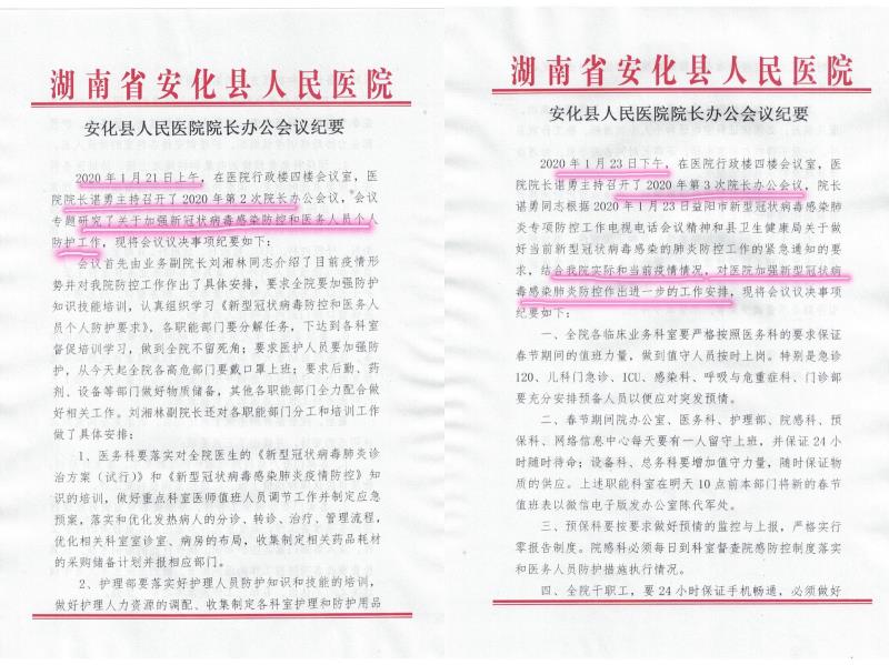 1月20日起,医院院长谌勇多次组织召开防控部署会议,强调要一分部署,九分落实。