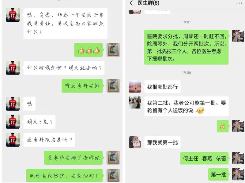 “不计生死,不计报酬,不计名利,只愿付出自己的一份力……”一批批医护人员主动请缨加入抗疫一线。现已在请战人员中选派10名资深医疗专家进驻发热门诊楼,另外每天安排专家组进行实时会诊;从请战人员中选派18名护士在普通发热门诊、发热留观病区和发热隔离病区,其中3位是护士长。