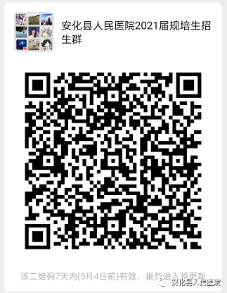 1、线下报名方式:实名微信扫码加入“安化县人民医院2021届规培生招生群”。
