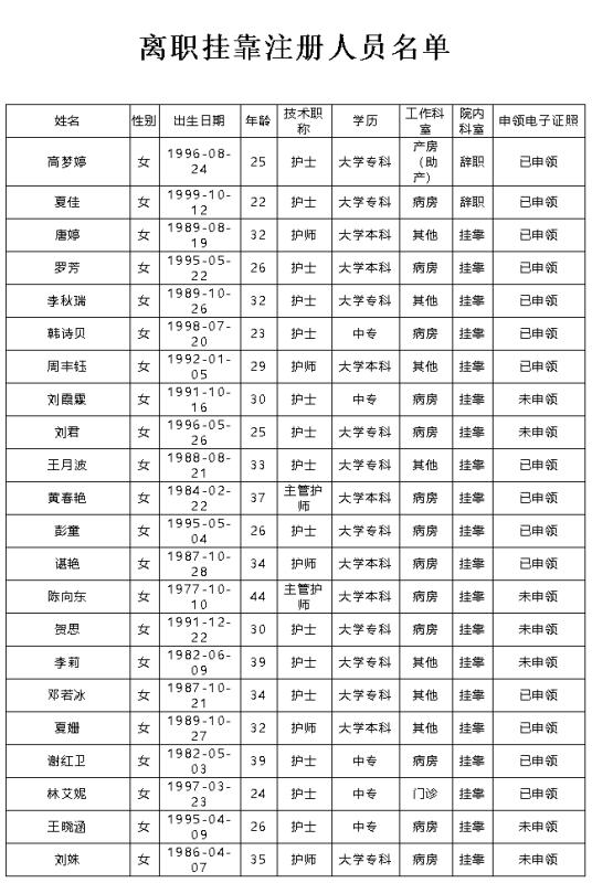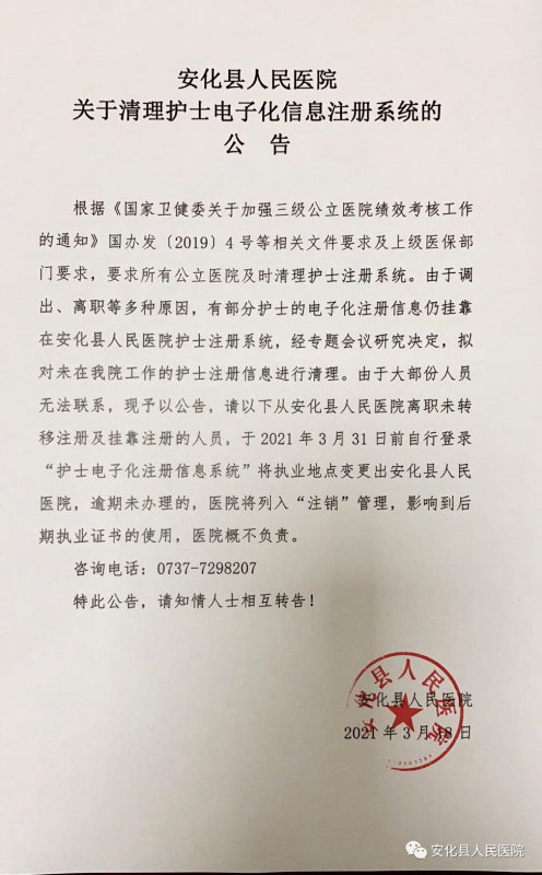 关于清理护士电子化信息注册系统的公告