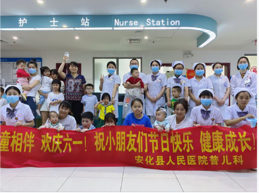 在我们的印象里,儿科病房环境嘈杂,家属情绪紧张,为了消除患儿及家属紧张的情绪,增进医患、护患之间的感情,在国际“六一”儿童节到来之际,为了让在院儿童过个开心愉快的节日,丰富治疗期间的单调生活,安化县人民医院普儿科在科主任、护士长的支持及全科医护人员的精心策划下,组织了以“医童相伴,欢度六一”为主题的活动。
