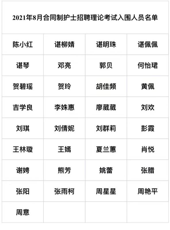 2021年8月合同制护士招聘理论成绩公示及入围名单