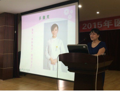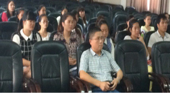 图为护理部主任龙文平讲课 图为质控科副科长何剑英讲课