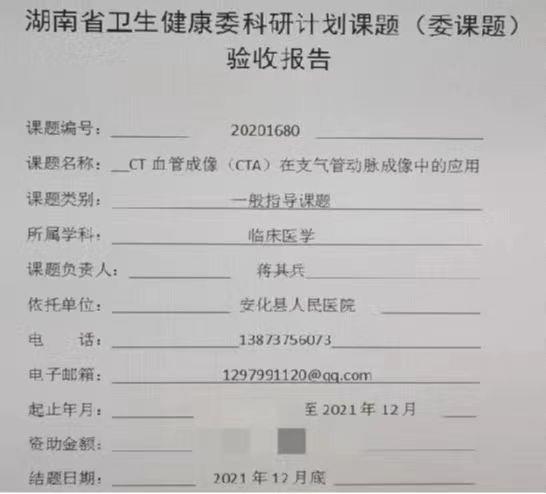 该课题由放射医学影像中心主任蒋其兵主持,于2019年年底获得湖南省卫健委科研立项,完成结题前后历时了2年多时间。