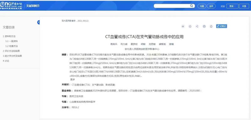 该课题在安化县人民医院科教科科长宁蝶辉指导下,由放射医学影像中心主任蒋其兵、副主任肖力威、原护士长谢瑾、主治医师夏梦姣、技师胡敏、龙思敏、龚智彪等共同完成。